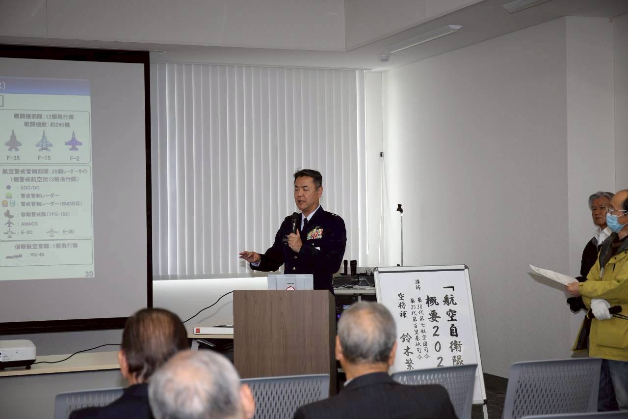 第1部では、航空自衛隊百里基地司令の鈴木繁直様をお招きし、貴重な講演会を開催いたしました。