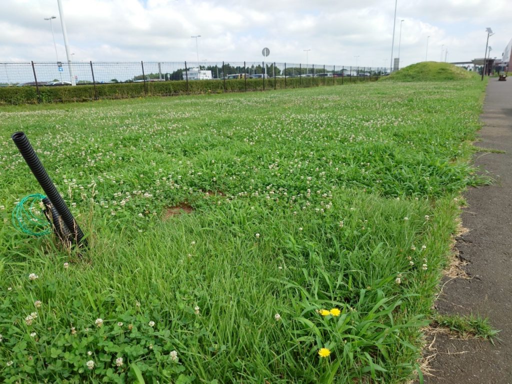 航空広場の芝や雑草たちは太陽の光と雨をたっぷり浴びて大きく成長していました。
