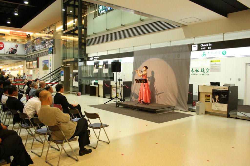 美しいハーモニカの音色が空港ロビーに響き渡り、多くの来場者が音楽を楽しむひと時になりました。